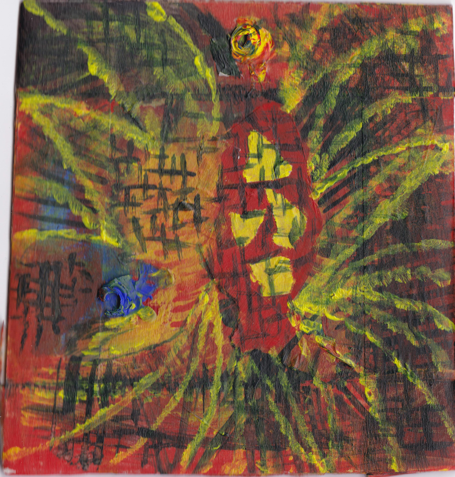 Acrylic on paper on cardboard. 5x5.